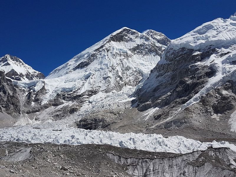 Today you will be hiking up to the Everest Base Camp. The day will be the most challenging day of the trek and at the same time the most fulfilling as well. The base camp is situated at an altitude of above ( 5,000m/16,400ft ). We start off by trekking to Gorak Shep first. It is a small village sitting atop a small frozen lake buried under sand. We will have our lunch thee and hike further following the trails of the Khumbu Glacier. On the way you will catch the glimpse of an intimidating black rock the world knows by the name of Mt. Everest. The way will lead us to the Everest Base Camp. Have you ever heard or read that Mt. Everest cannot be seen from the Everest Base Camp? You will find the answer yourself. We will spend quality time exploring the base camp and surrounding areas and return to Gorak Shep. Overnight stay at Gorak Shep.
