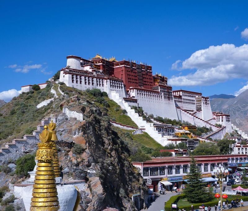 Potala Palace is one of most famous architectural works of Tibet and stands on the top of the Red Hill in Lhasa. The word Potala comes from Sanskrit. In the 7th century, it was built for meditational purpose. It was Dalai Lama’s winter palace. Its white part is used for administrative purpose and the red part for the religious purpose.