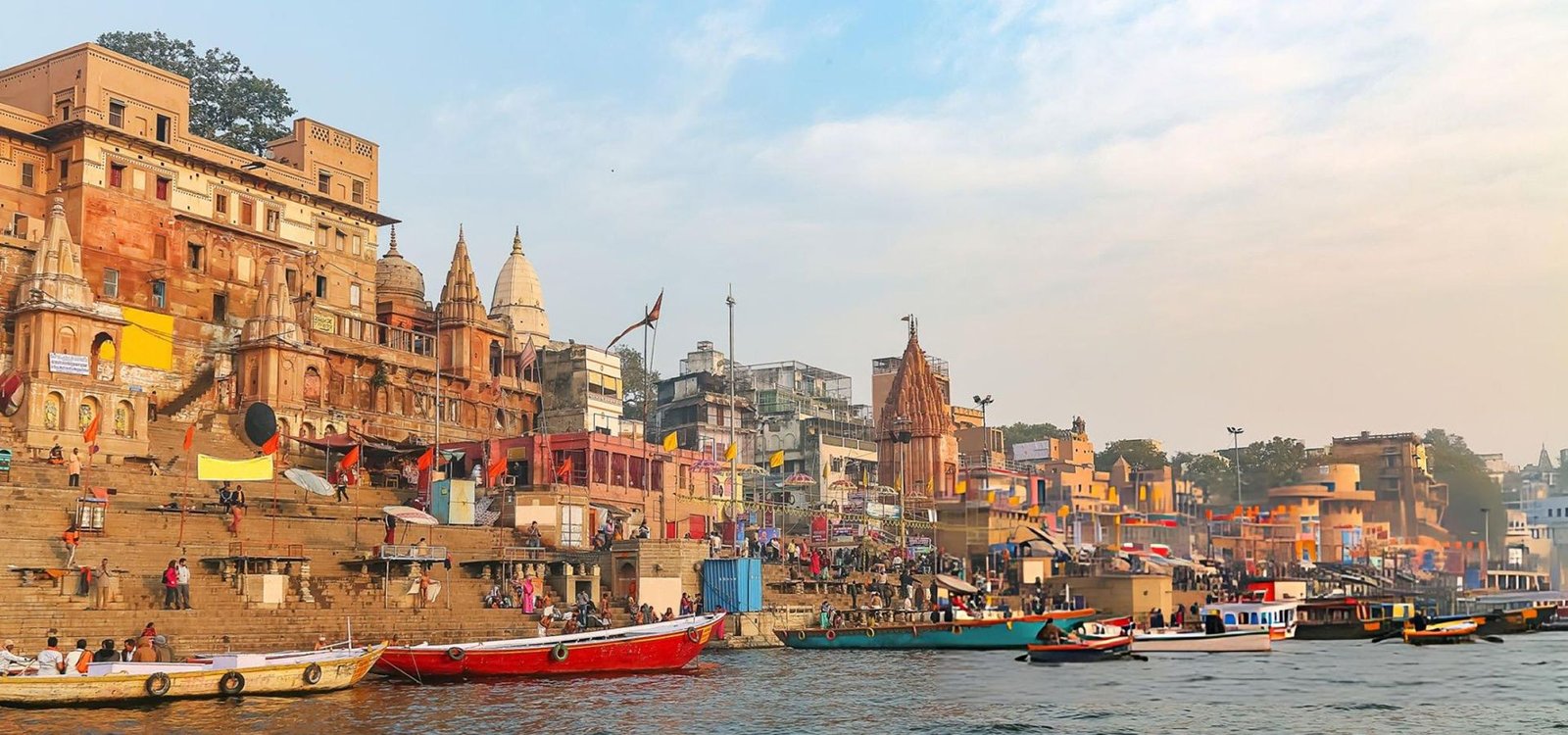 Early morning boat ride on the holy river Ganges to see the bathing Ghats and the cremation
