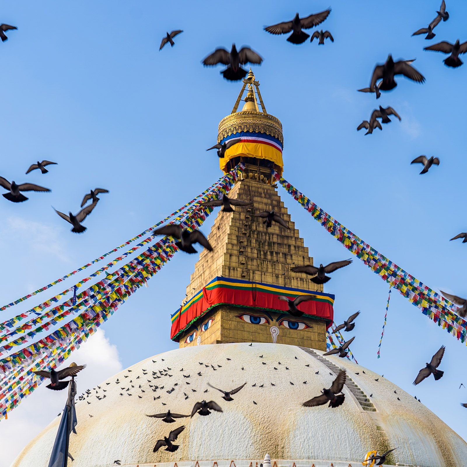 of the Living Goddess “Kumari” and excursion to Swayambhu Nath Stupa. Continue